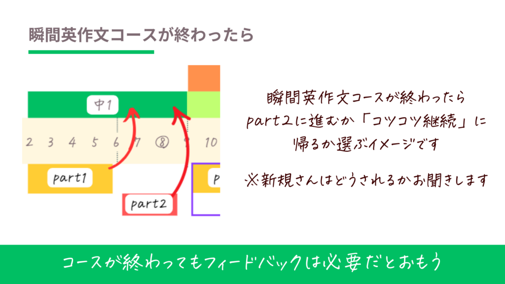 瞬間英作文コースが終わったら、コツコツ継続コースに戻るイメージです