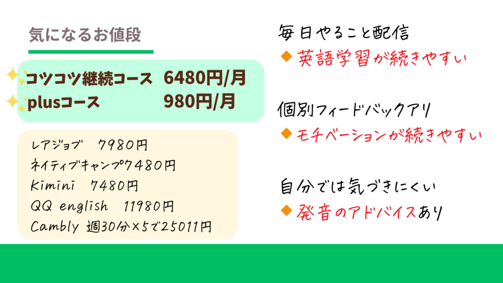 これ、あたり前?って思うけど、英語教材では高額を出さないと受けれないことが多い…と思う