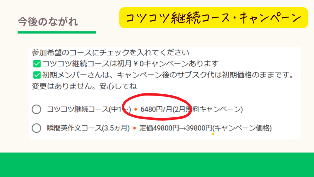 瞬間英作文が終わったら、コツコツにもどります。初期メンバーさんは今のコツコツのサブスク代がそのまま適応されます😌😌